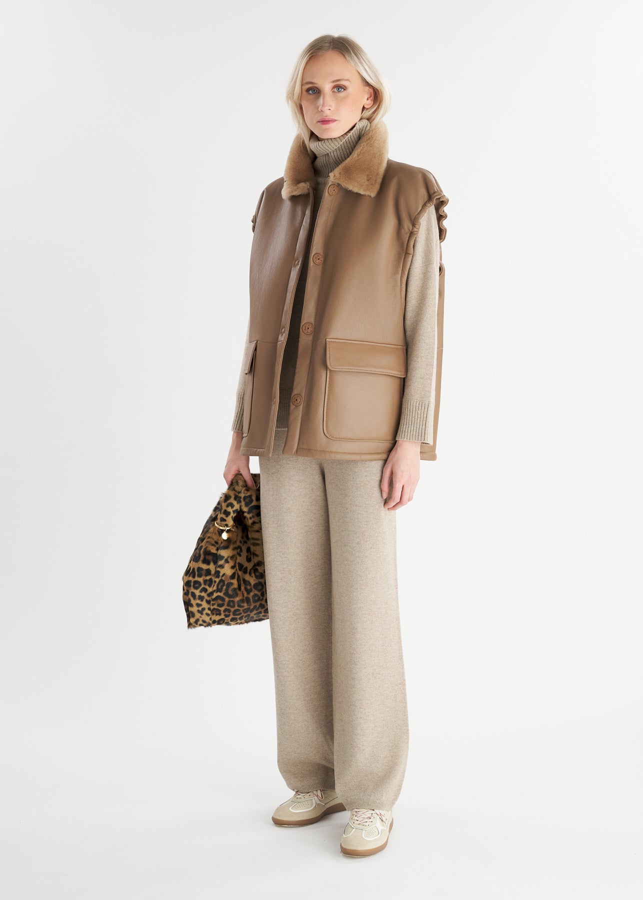 VEST in shearling lacon. Snap button closure. Patch pockets on the front.
