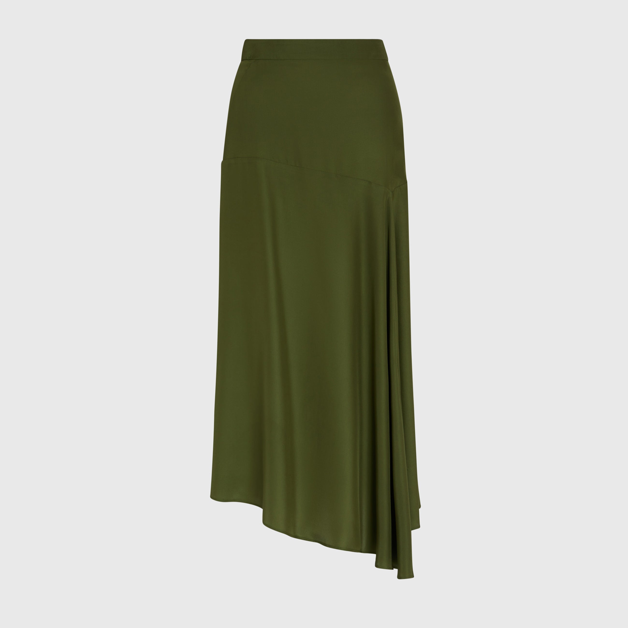 Long skirt Made of military green matte silk. Medium waist and flared line.