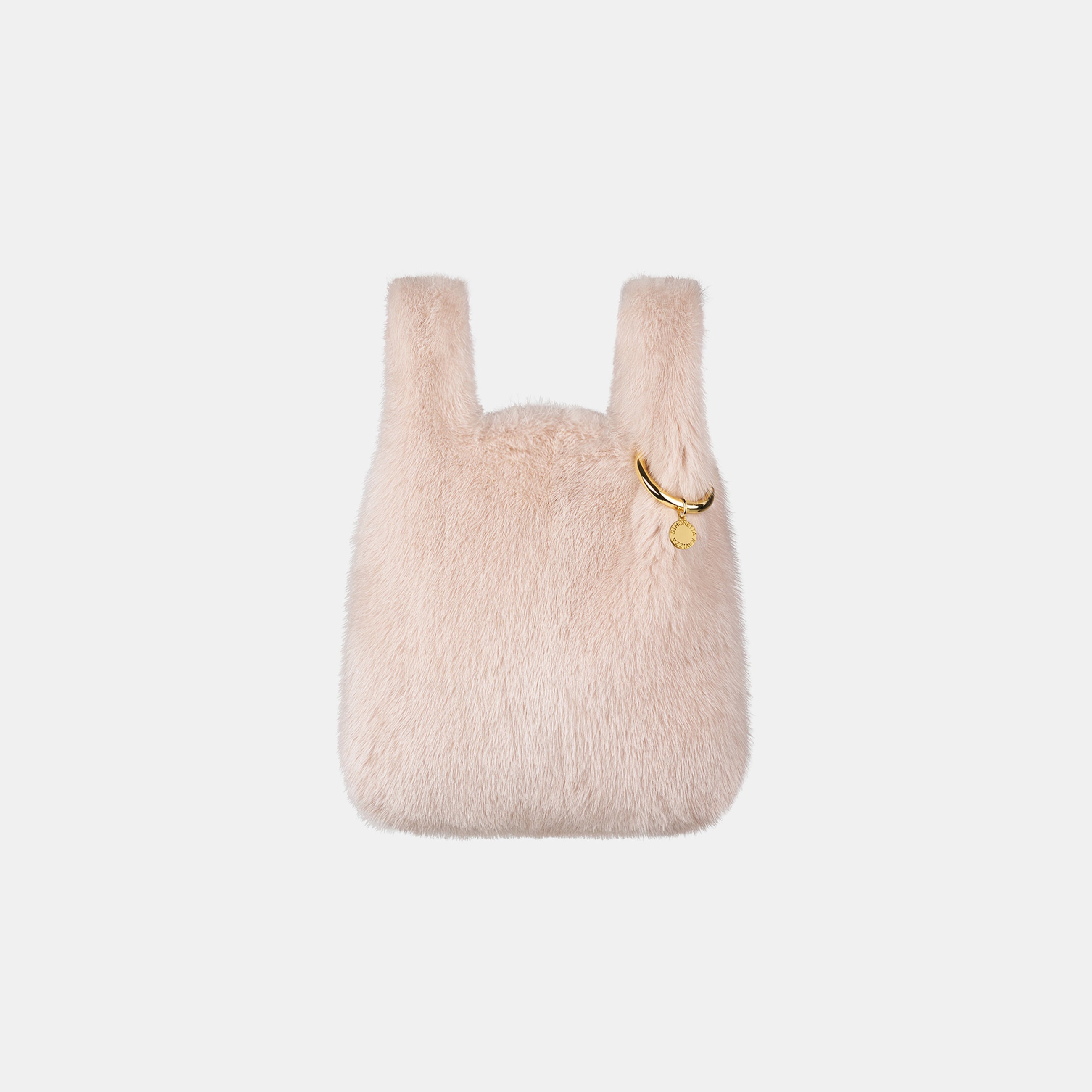 Mini borsa a mano "Furrissima Baby", realizzata in visone baby pink. Etichetta metallica interna applicata su tasca con finitura smaltata.