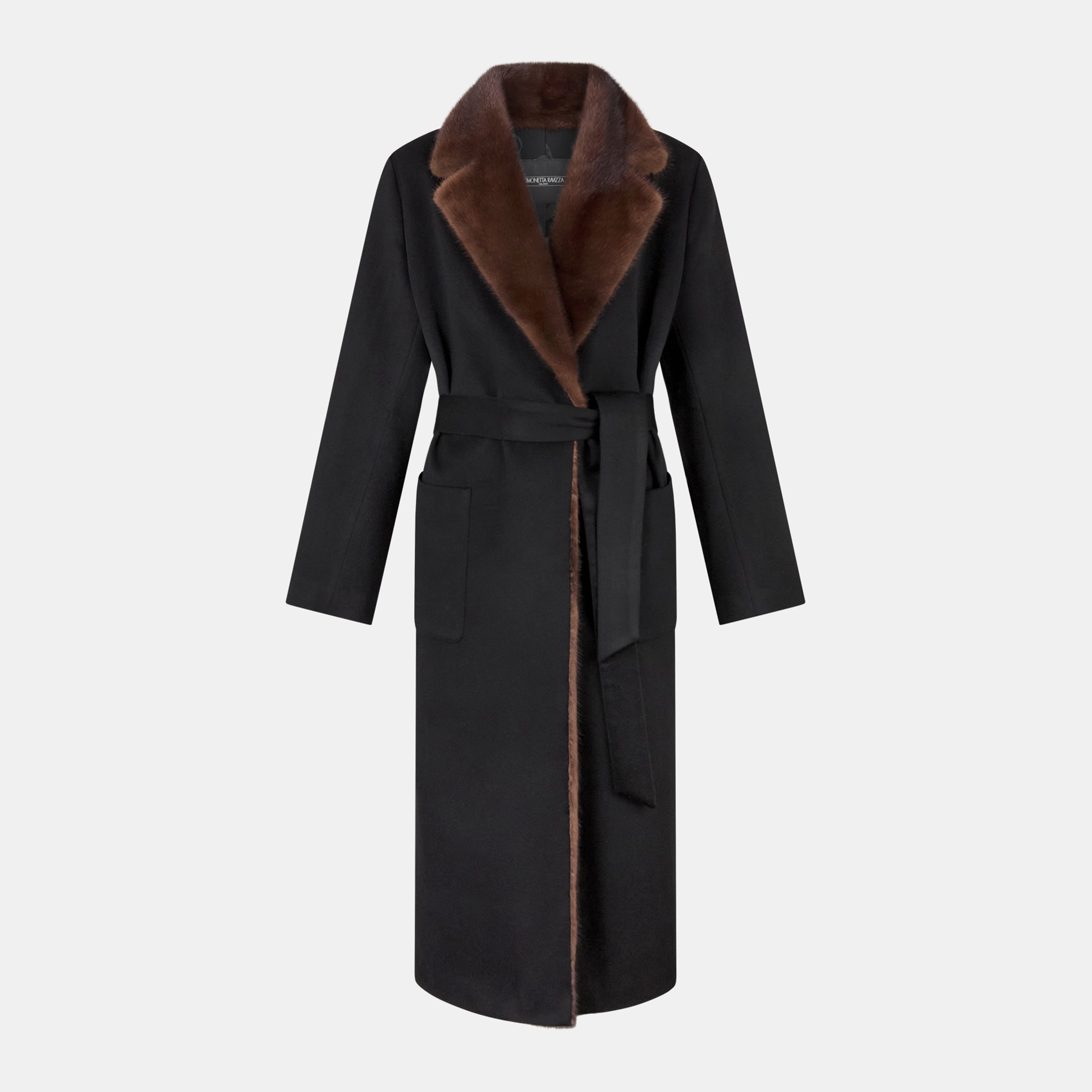 Cappotto con cintura in cashmere Loro Piana con dettagli in visone Demi Buff.