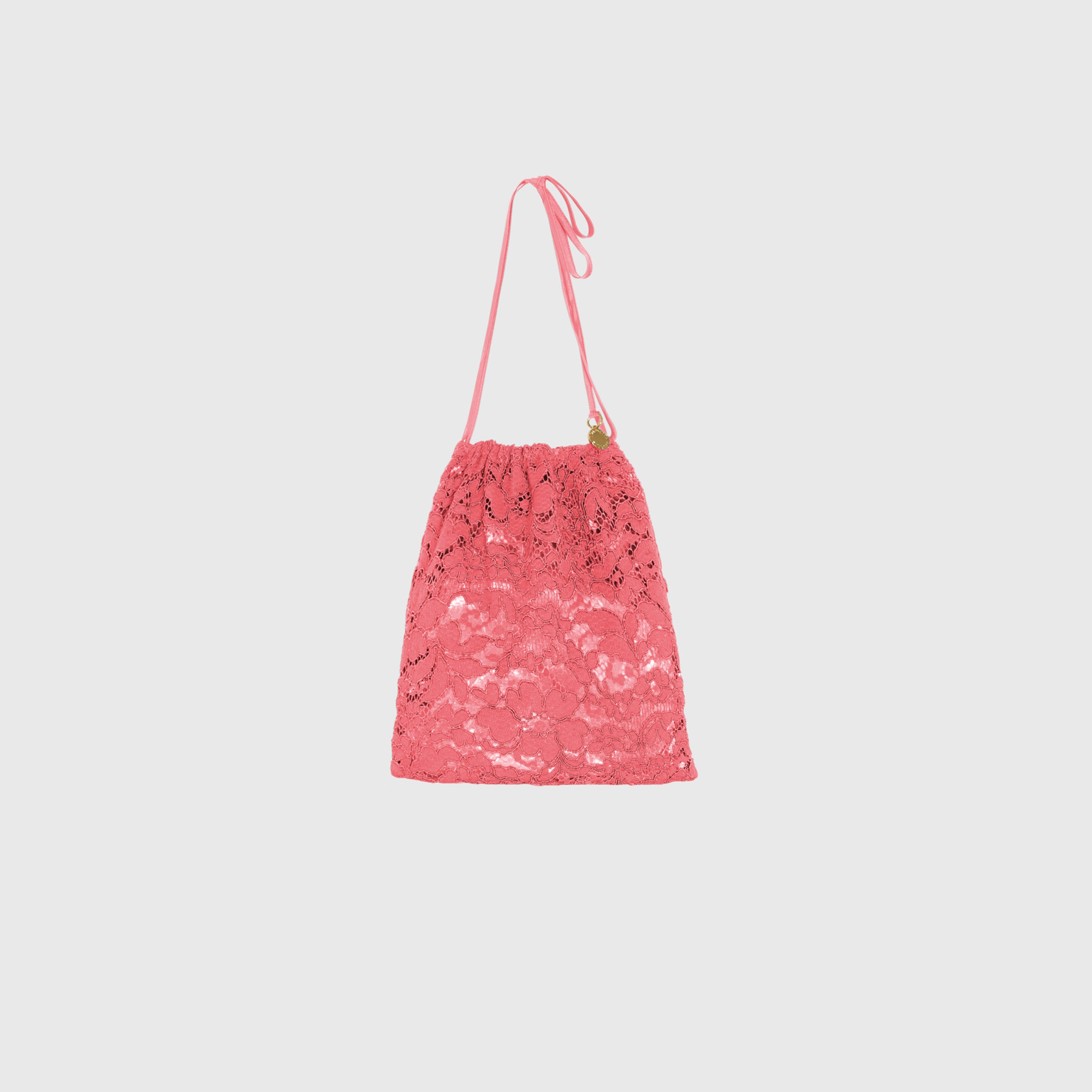 Borsa a sacchetto "Furrissima", realizzata in pizzo.  Accessori metallici con finitura dorata