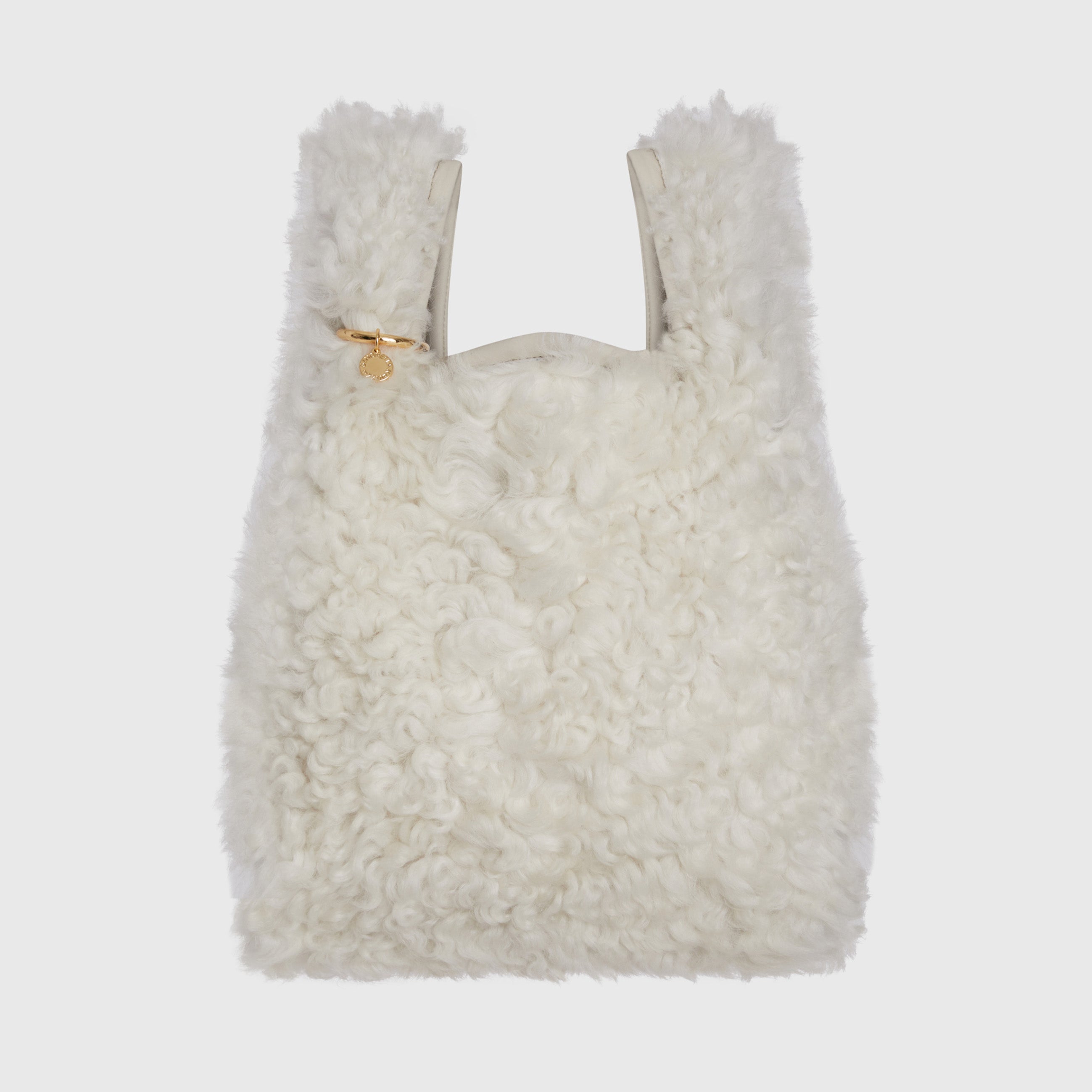 Borsa a mano "Furrissima", realizzata in shearling vega. Etichetta metallica interna con finitura smaltata nera su fondo oro. Accessori metallici con finitura dorata.