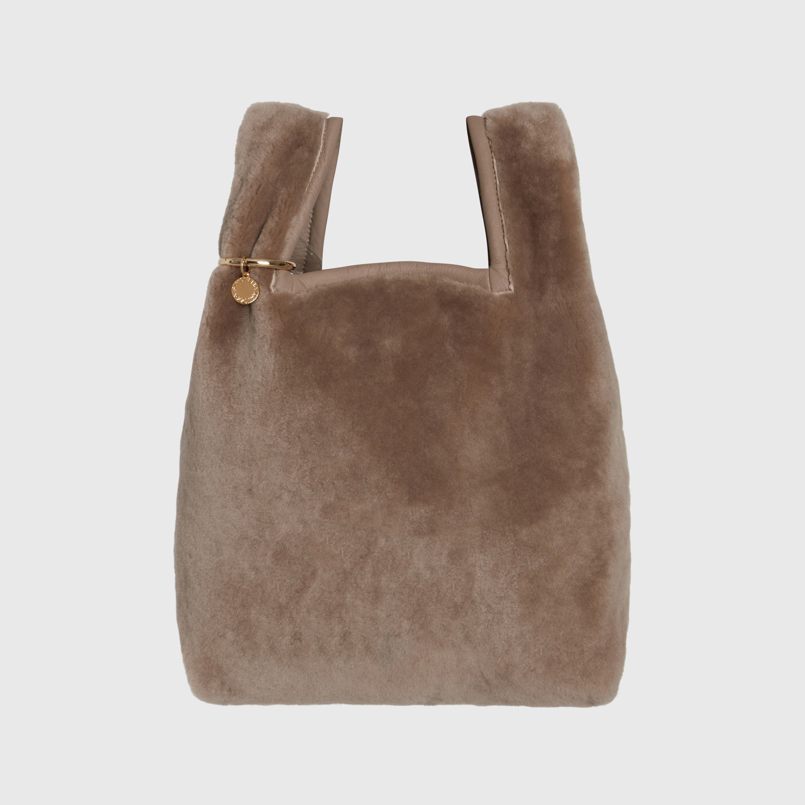 Borsa a mano "Furrissima", realizzata in shearling astrale. Fodera interna. Etichetta metallica interna applicata su tasca con finitura smaltata . Accessori metallici con finitura dorata.