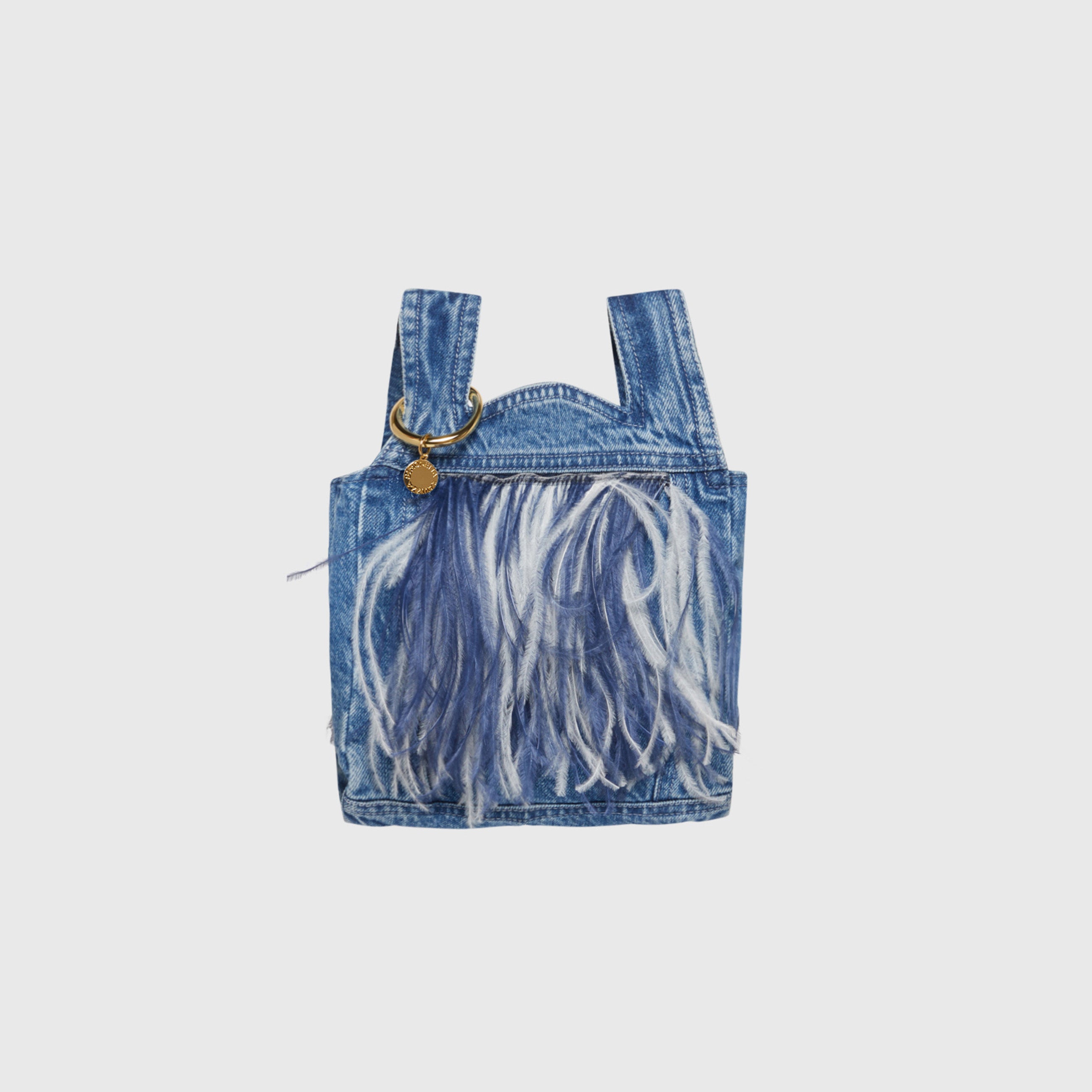 Mini handbag "Furrissima Baby", made of denim cotton with feather appliqué. Metal accessories with gold finish.
