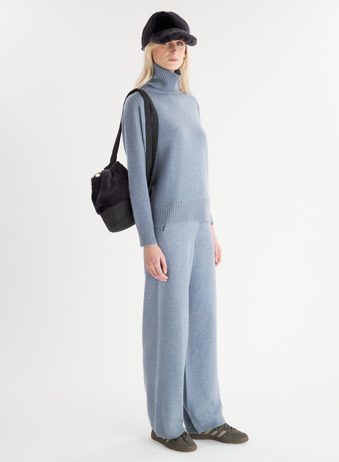 Pantaloni morbidi in maglia, realizzati in cashmere blue mist. Eleastico in vita.