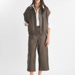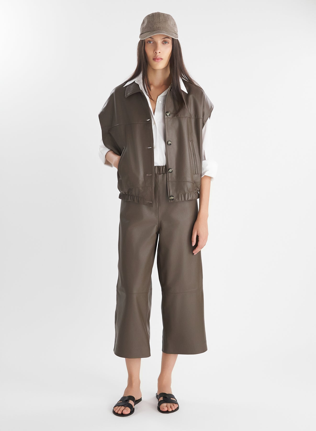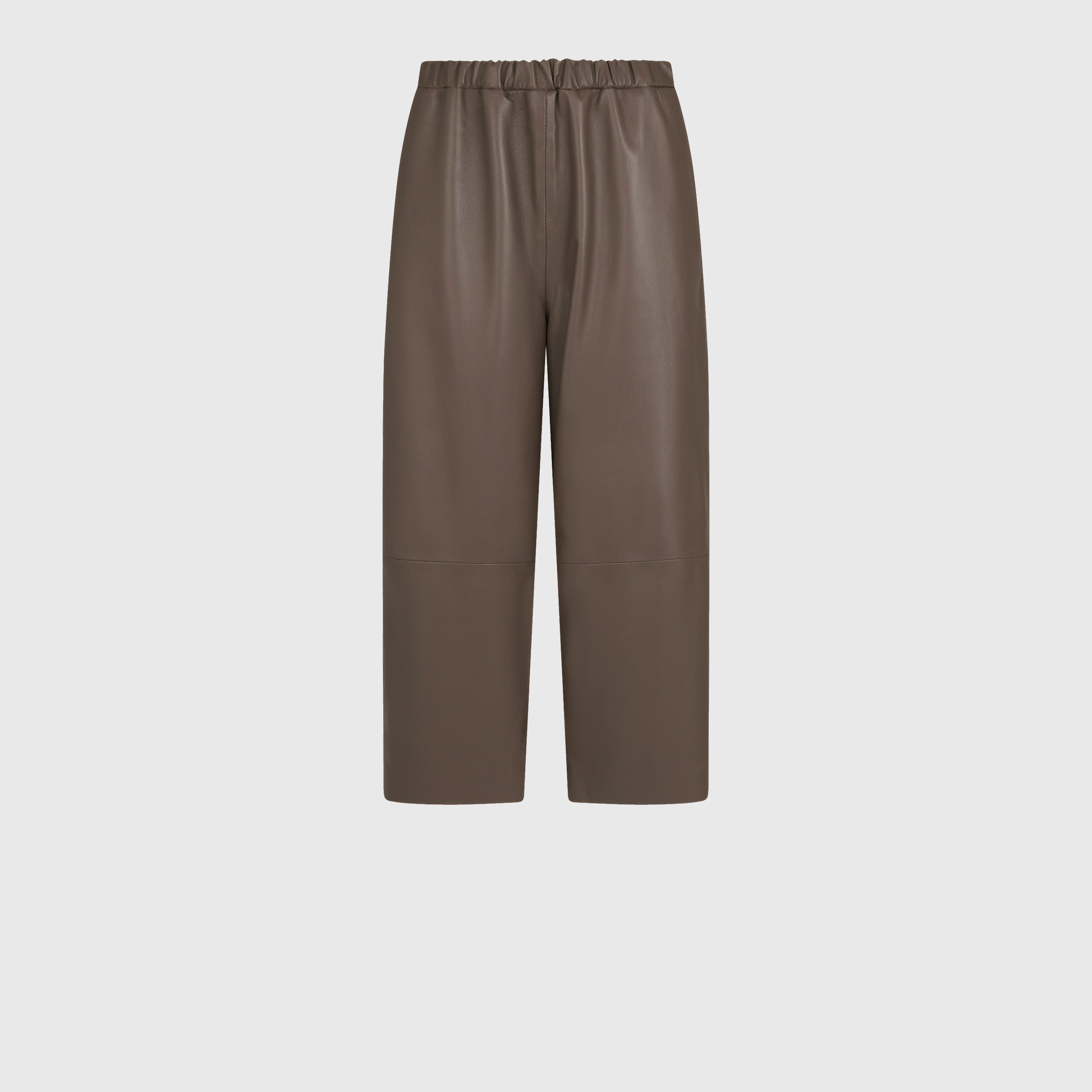Pantalone capri realizzato in morbida pelle con elastico in vita.