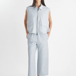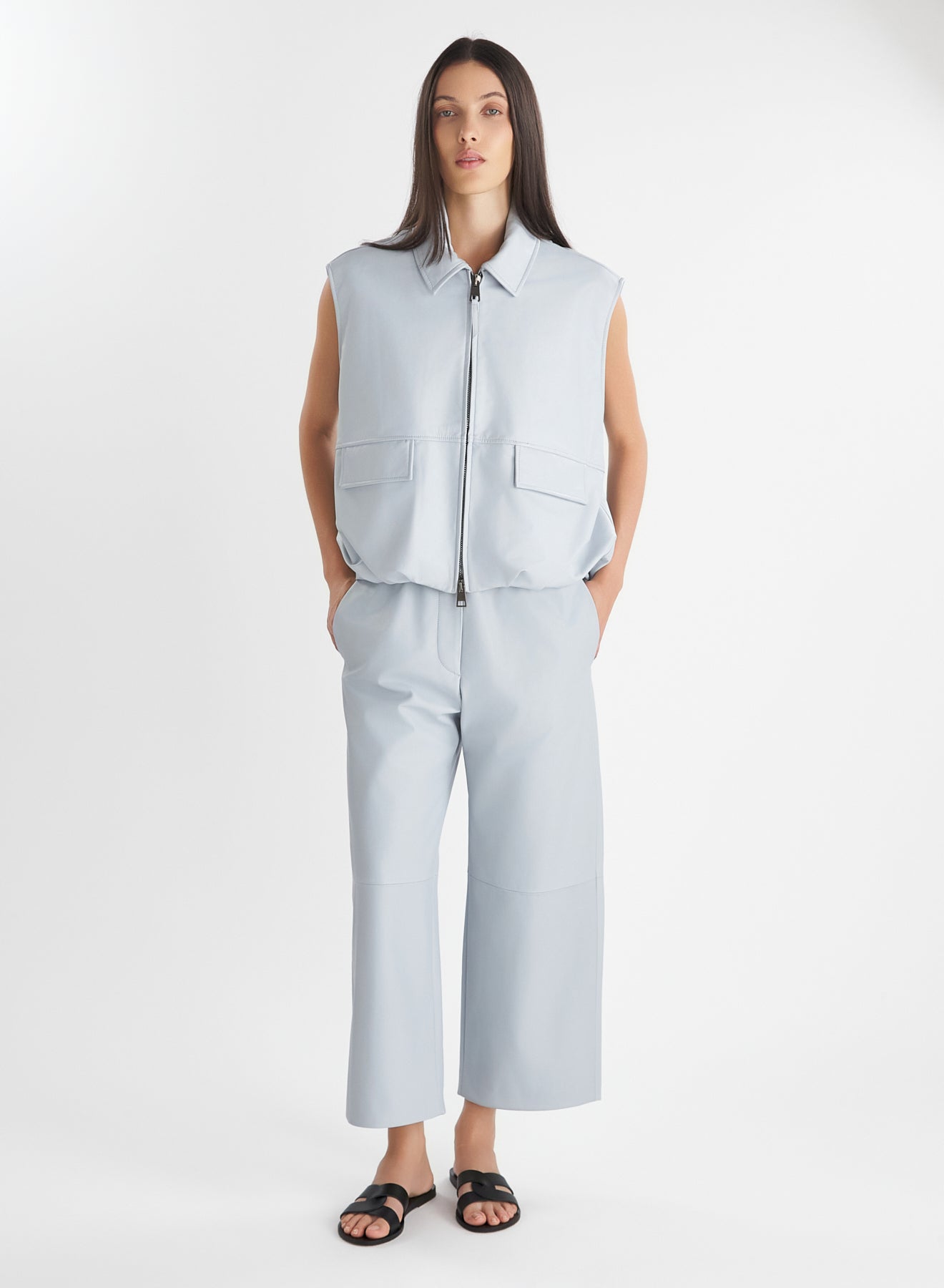 Pantalone realizzato in morbida pelle con elastico in vita.